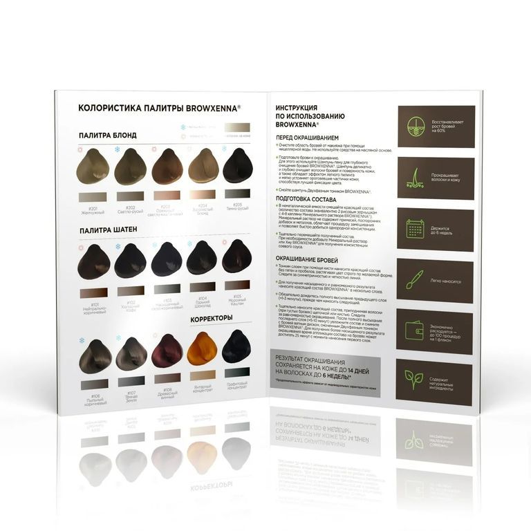 Хна для бровей BrowXenna® — первая хна, разработанная специально для окрашивания бровей. Окрашивание сохраняется до 14 дней на коже и до 6 недель на волосках. Хна BrowXenna® обладает уникальными свойствами. Благодаря натуральным красителям — растениям лавсония и индигофера, хна придает тон бровям. А входящие в состав амла, шакакай, гибискус и чайное дерево усиливают эффект окрашивания, дарят волоскам дополнительное питание и увлажнение. Окрашивание хной BrowXenna® способно перекрыть старый татуаж.