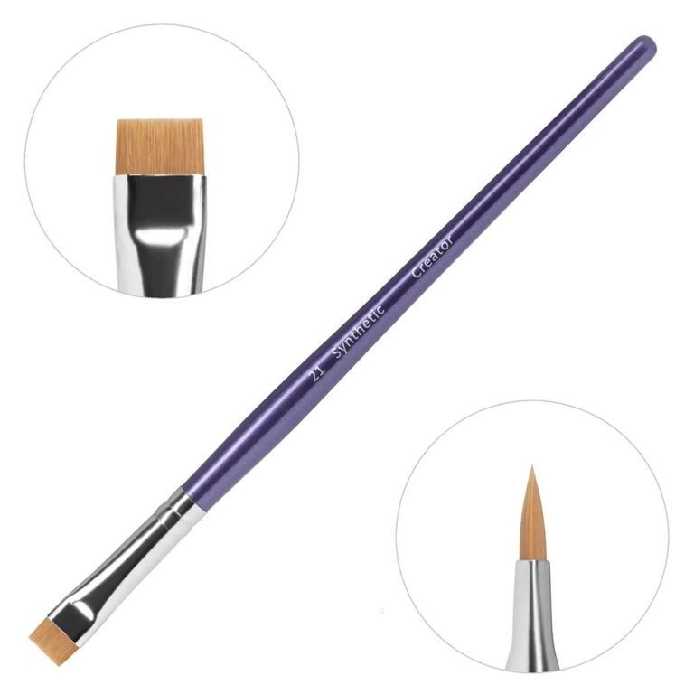 Кисть №21 от бренда Creator Synthetic - плоская, прямая, синтетическая кисть для подчищения деталей, создания четких линий в работе с бровями. Используется так же для работы с жирными текстурами (корректор/паста).