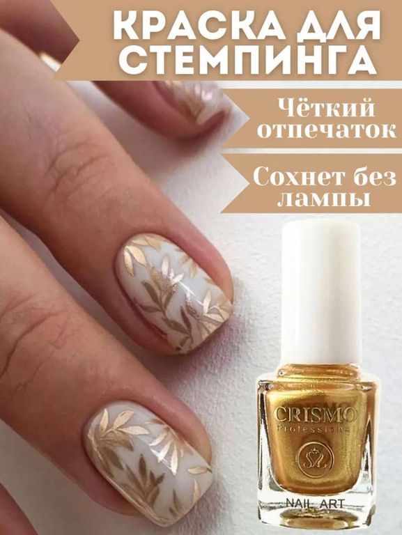 Лак для стемпинга золотой. В нашем магазине представлены только оригинальные товары бренда Crismo Stamping. Это концептуальный российский бренд. Мастера маникюра и педикюра, nail индустрии и их клиенты уже успели оценить все достоинства товаров от амбициозной компании. Лаками удобно наносить рисунки на ногти или делать оригинальный френч и дизайн весна лето. Высокая пигментированность и насыщенность цвета.