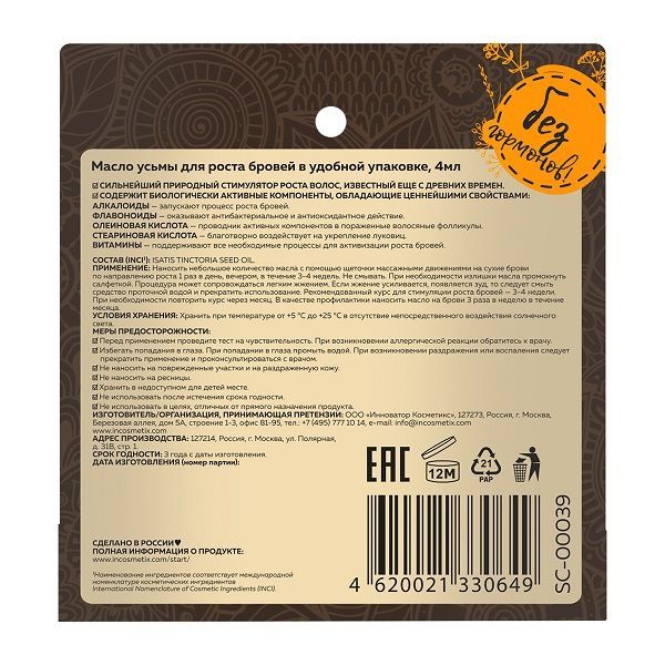 ? усиливает естественный пигмент, брови выглядят более здоровыми и блестящими.