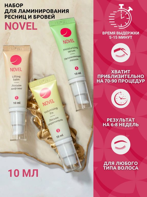 Составы нового поколения для ламинирования ресниц и бровей Novel. Максимальная забота о здоровье волосков. Самая удобная упаковка для мастера.