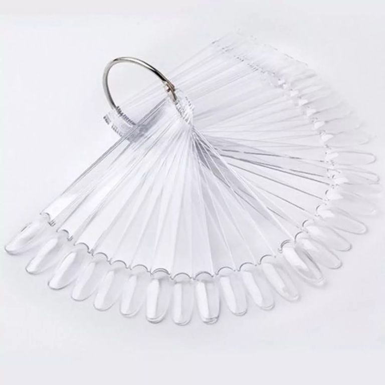 Типсы выполнены из прочного качественного пластика и скреплены с помощью раздвижного металлического кольца в виде веера.