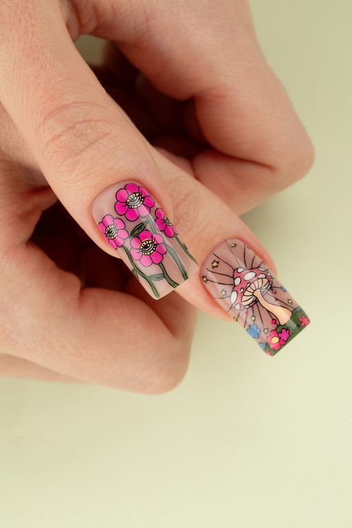Неформальная, дерзкая пластина в стиле хиппи и Fantasy Mushrooms, подойдет для самых смелых, ярких дизайнов!