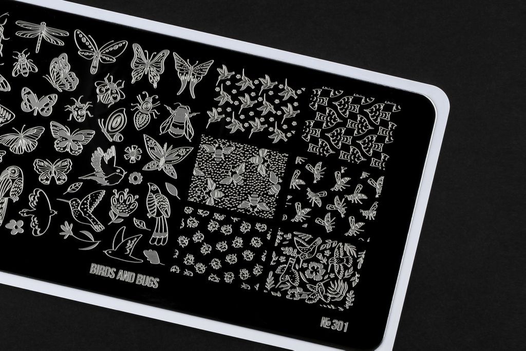 Птицы, пчелы, бабочки, стрекозы — на этой пластине мы собрали самые красивые паттерны с крылатыми созданиями. Выбирай свой и создавай изящный воздушный дизайн!