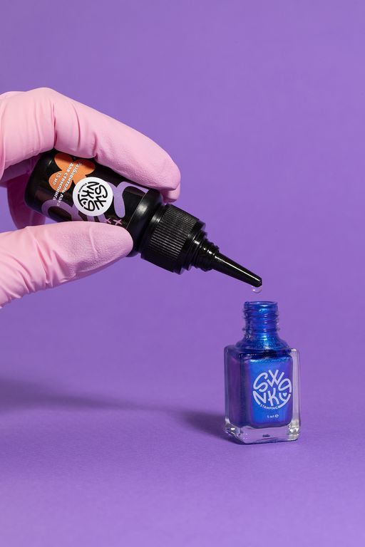 - добавьте 4-6 капель жидкости во флакон с лаком для стемпинга и тщательно встряхните до полного смешивания.