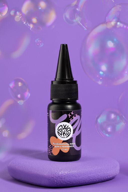 Разбавитель лака для стемпинга поможет увеличить время высыхания лаков для стемпинга, не даст им схватиться на пластине или штампе и позволит создавать дизайны в размеренном, комфортном темпе.