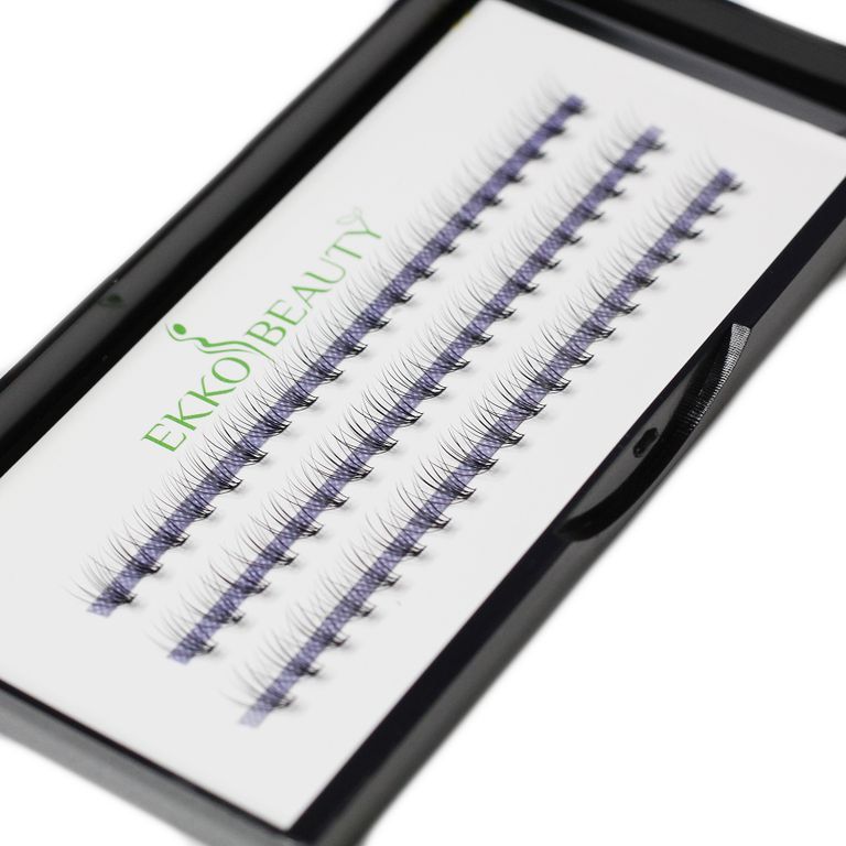 Пучки имеют особенную форму с плоским тончайшим фирменным основанием вместо привычного узелка, и обладают естественным изгибом, благодаря чему быстро и легко приклеиваются и надежно держатся. Каждая ресничка максимально похожа на настоящую, поэтому пучки создают эффект натуральных, густых ресниц, а взгляду придают выразительный эффект.