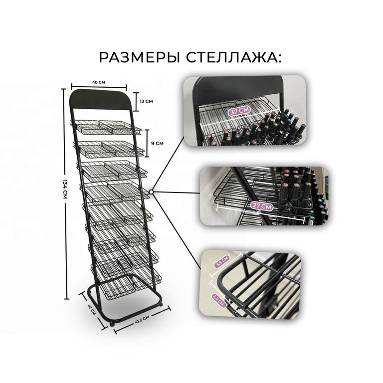 Металлический стеллаж можно использовать для лаков и для любых других материалов и инструментов.