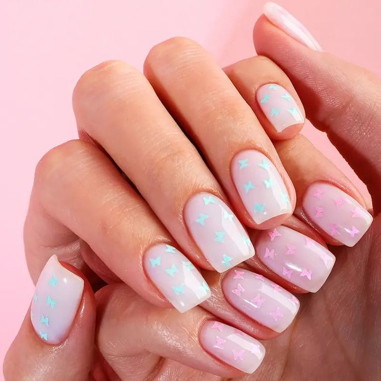 • Содержит голубой глиттер в форме бабочек. Идеален для стильных экспресс-дизайнов.