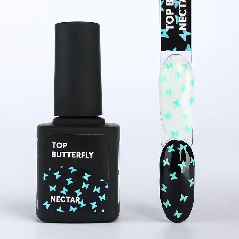 Вдохновение окрыляет! Твори неповторимые дизайны в одно движение кисти с арт-топом, полным глиттера в форме небесно-голубых бабочек.