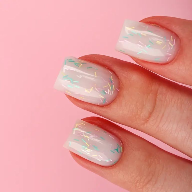 Ярко, еще ярче! Не бойся выделяться с этим сочным шейком из голубых, оранжевых и розовых частичек глиттера. Твои ногти в центре внимания!