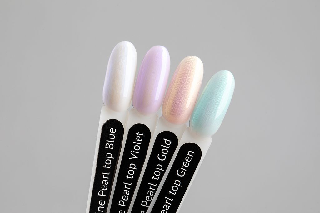 Топ без липкого слоя Super Shine Pearl Top Green, средне-жидкой консистенции с эффектом жемчужного маникюра.