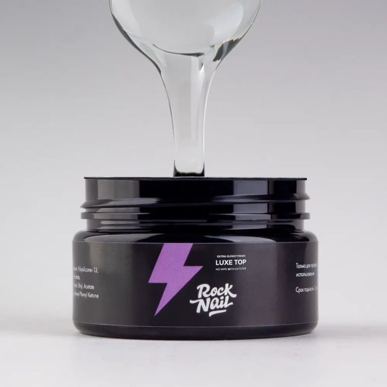 Мечта об идеальном глянце — теперь реальность! Ослепительный RockNail Top Luxe поможет тебе создать мегатрендовый эффект wet nails. Покрытие будет сиять весь период носки маникюра. Наноси и наслаждайся! А чтобы работать было еще удобнее, выбирай особый эконом-формат 30 мл.