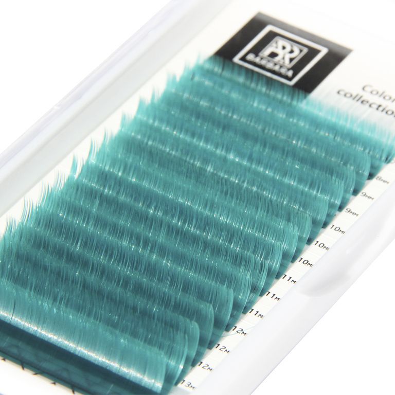 Цветные ресницы изумрудного цвета используются для профессионального наращивания ресниц. 16 линий в палетке.