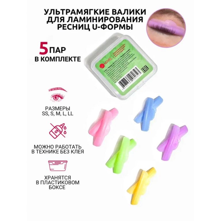 Силиконовые валики U формы Novel упакованы в пластиковый бокс, в котором их удобно и гигиенично хранить.