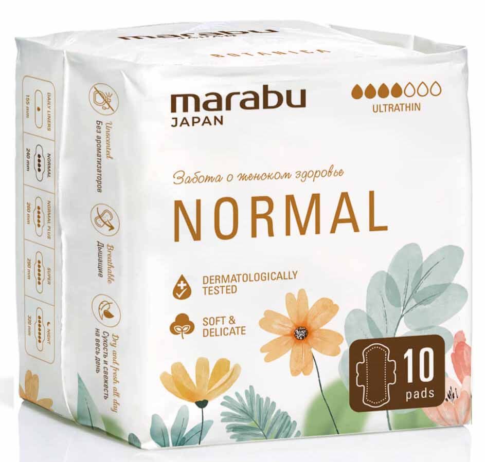 Ультратонкие прокладки Marabu Botanica Нормал, 240 мм, 10 шт. – надёжная защита и комфорт в критические дни. Созданы совместно с гинекологами, прокладки имеют анатомическую форму, которая идеально повторяет линии тела и обеспечивает удобную посадку без дискомфорта.