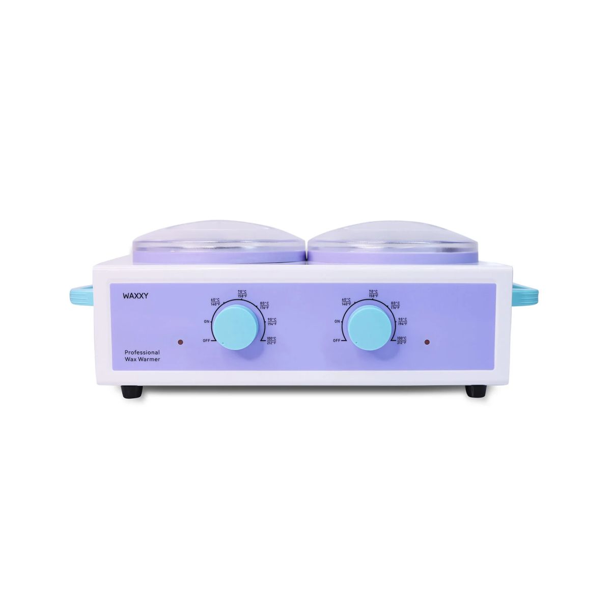 Двойной баночный воскоплав WAXXY оснащен двумя алюминиевыми чашами, что позволяет одновременно растопить два вида любого воска. Это значительно экономит время и упрощает процесс депиляции.